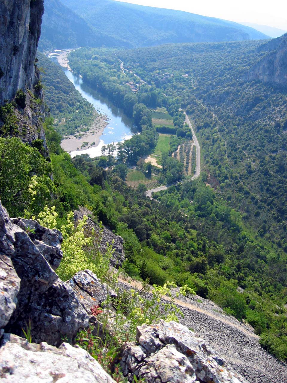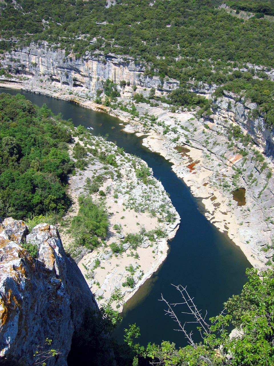 Unser erster Kontakt mit der Ardèche. Zwischen Vallon Pont d'Arc und St. Martin d'Ardèche hat sie sich eine tiefe Schlucht in die Berge gegraben mit zum Teil über 200 Meter hohen Wänden. |