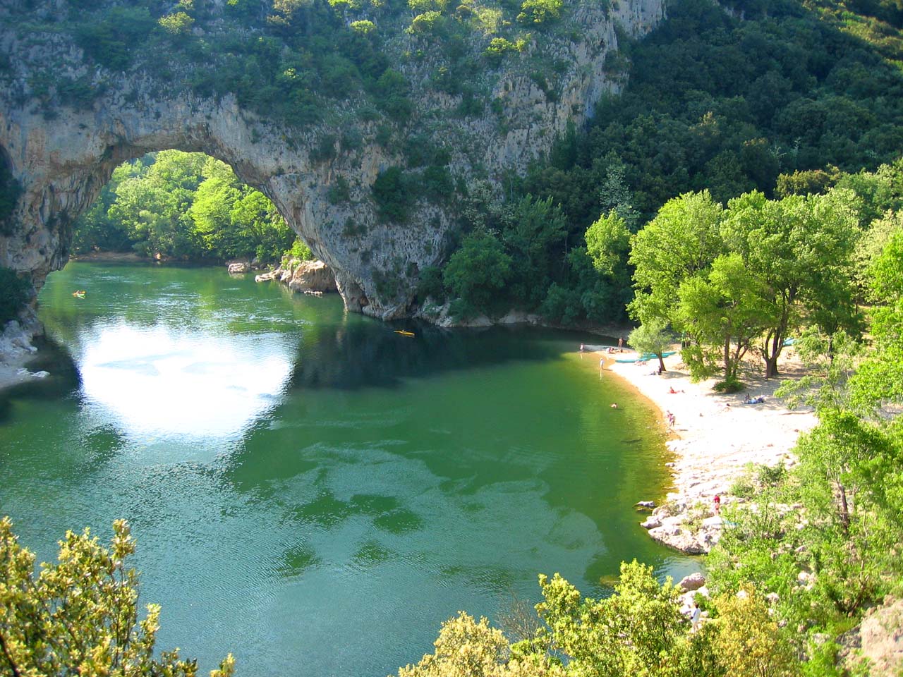 | Diese Felsenbrücke wurde früher tatsächlich als Übergang über die Ardèche benutzt. Heute ist sie nur noch für die Touristen da. |