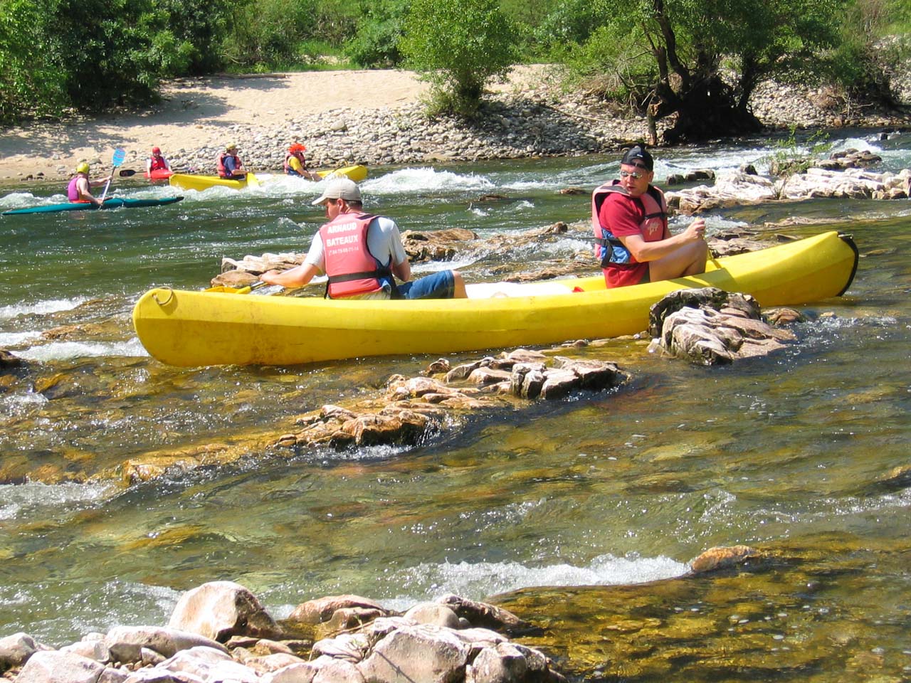 | Genau an dieser Stelle liegt auch eine etwas schwierigere Passage für die Kanuten. An dem Tag als wir unterweg waren, sind etwa 10% aller Boote hier gekentert. Wir selber sind zwar durchgekommen, mussten aber (wie nach jeder Stromschnelle) am Strand anlegen und unser Boot ausschütten. |