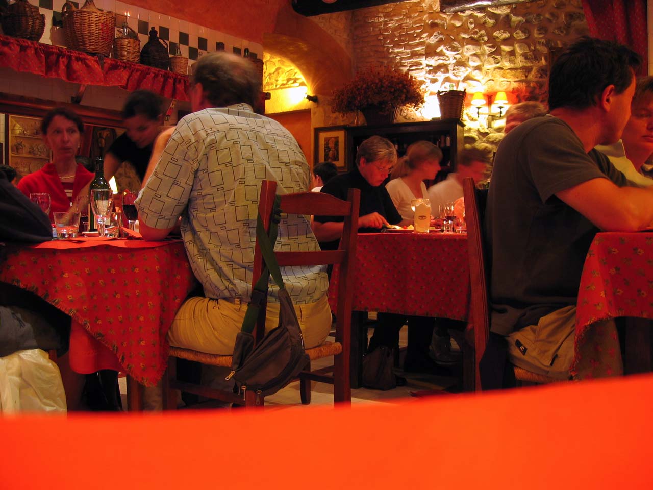 | Hier von innen, "heimlich" beim Essen aufgenommen. Auf Blitzlicht musste ich deshalb verzichten und damit es nicht verwackelt, musste die Kamera auf dem Tisch stehen bleiben. |
