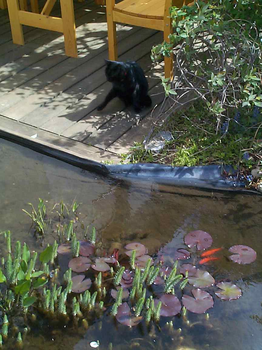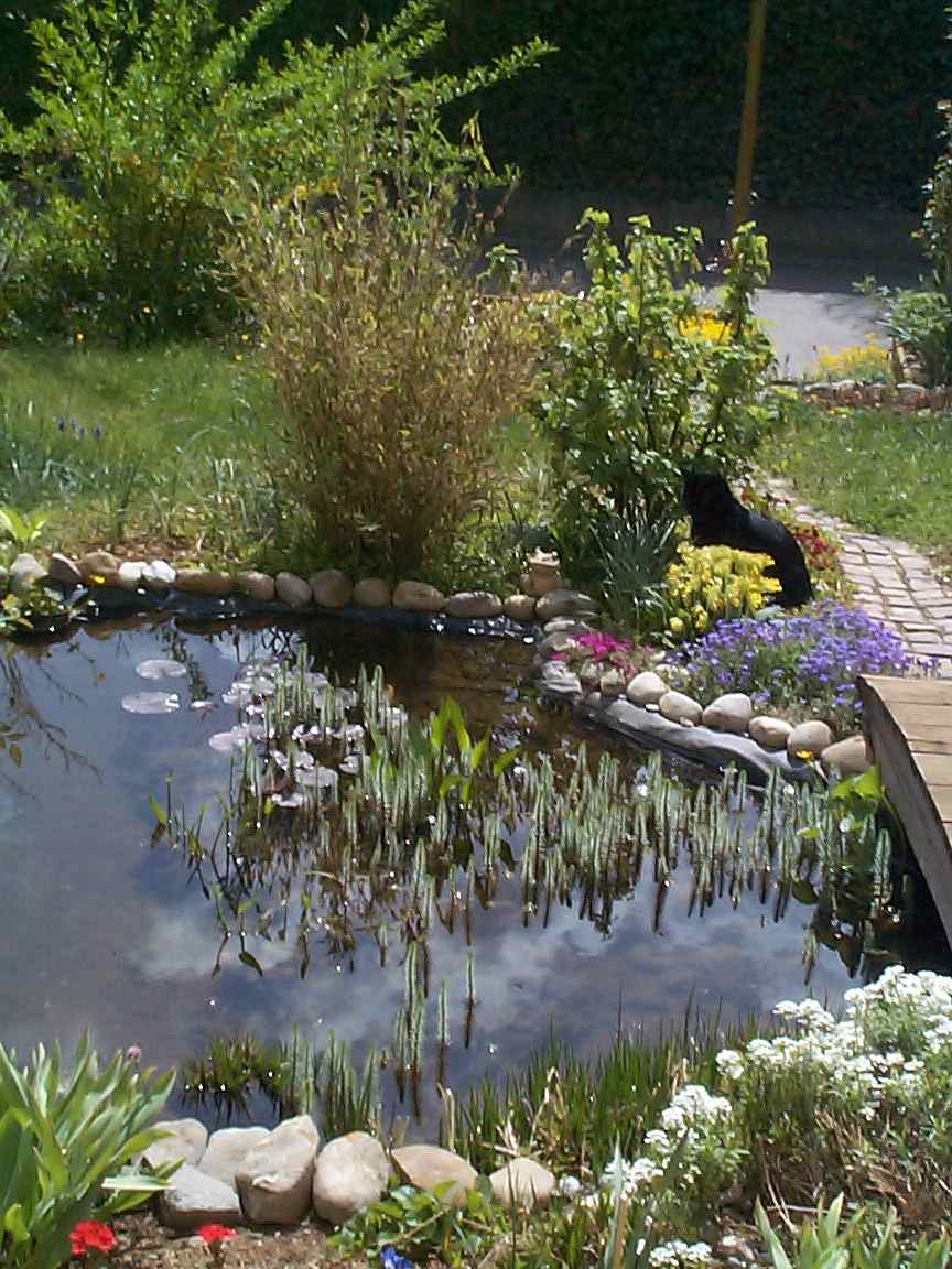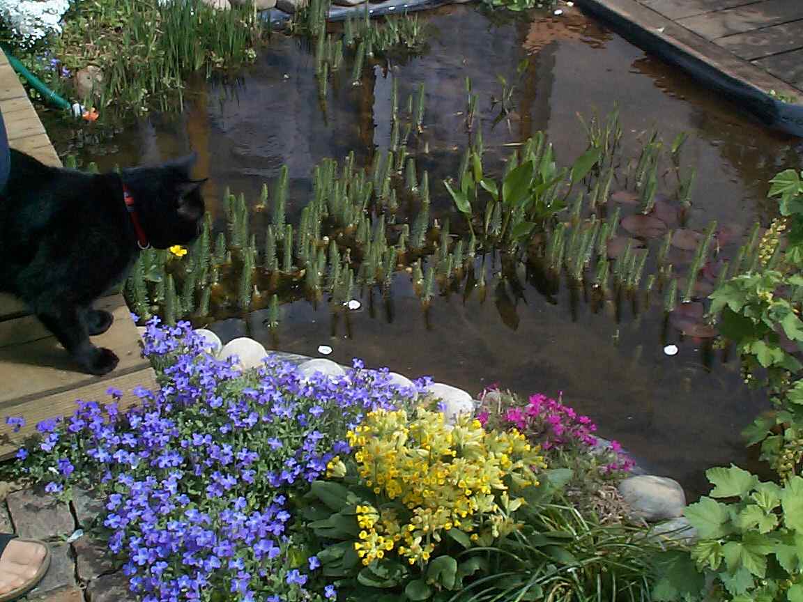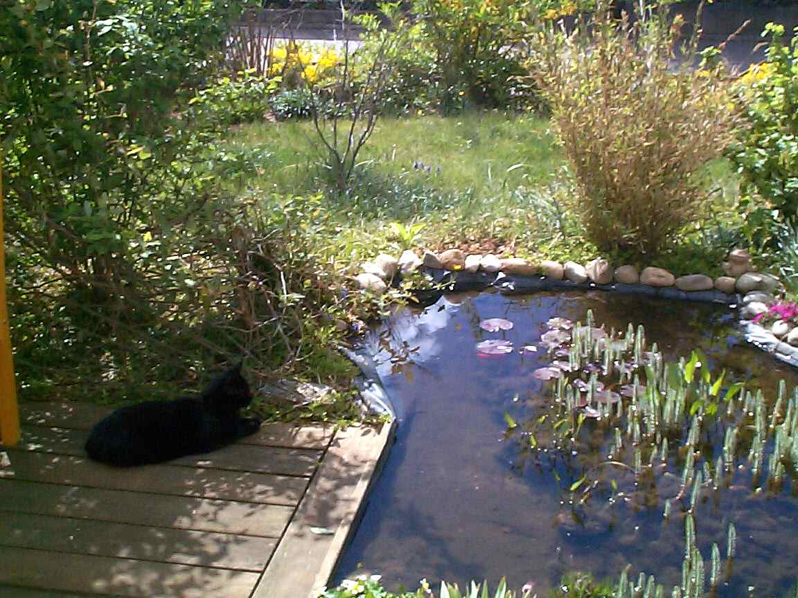 | Dort, wo die Katze sitzt, ist der Teich etwas flacher und wird von