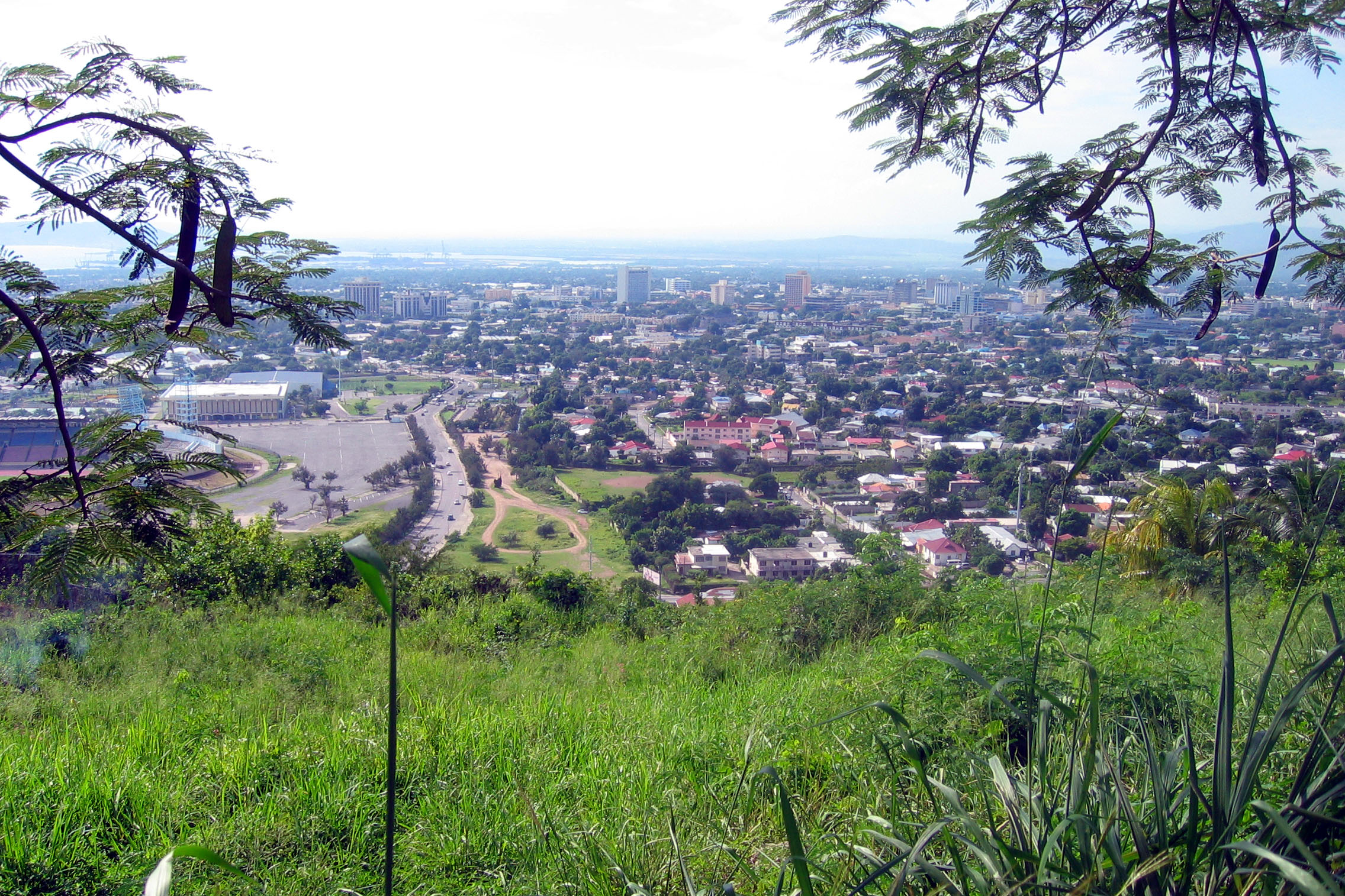 | Auf dem Rückweg können wir einen kleinen Photostop einlegen. Hier der Blick auf die besseren Bereiche Kingstons. Wir sind zwar mit dem Bus auch durch die Slums gefahren, da habe ich mich aber nicht getraut zu knipsen. |