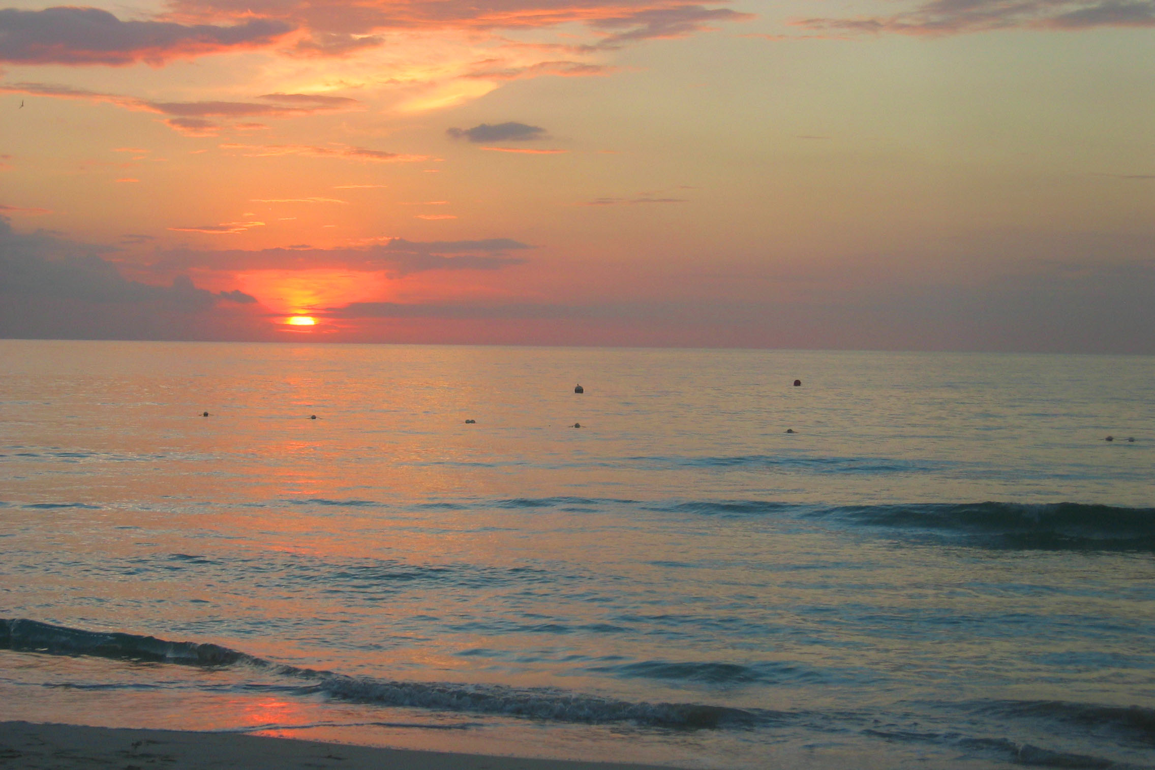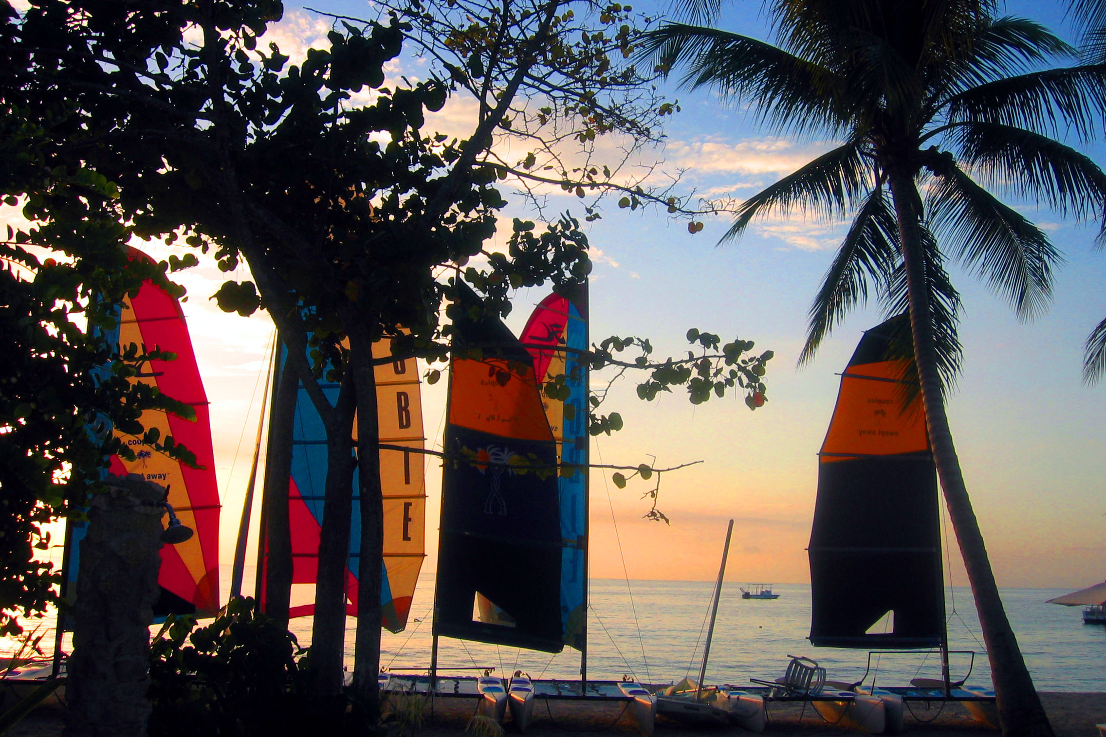 Sonnenuntergang am Hotelstrand, bei unseren Hobie Cats. Die kleinen