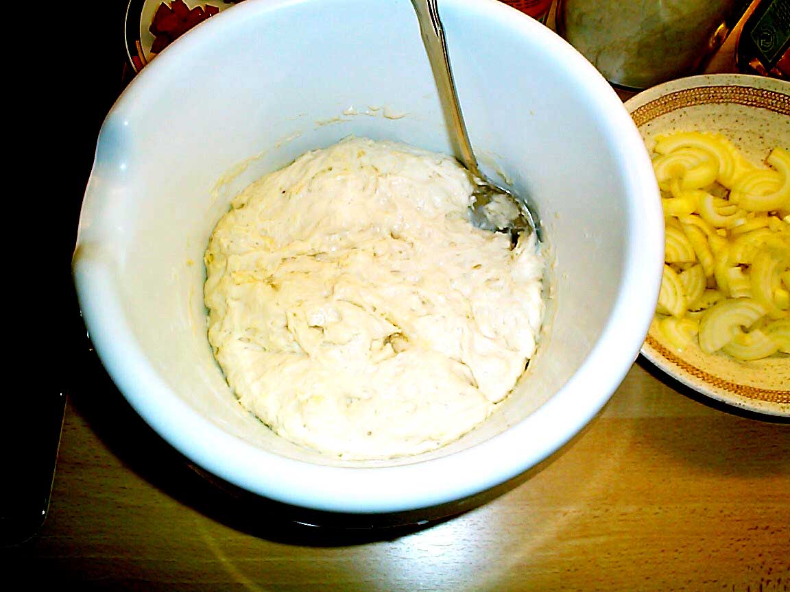 Mehl verkneten bis er nur noch leicht an den Fingern klebt. Eingeweihte Kreise