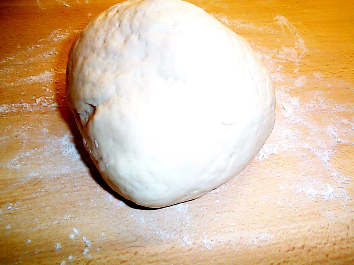 Man beginnt mit einem einfachen Hefeteig aus 250g Mehl, 2-3 Esslöffel Olivenöl,